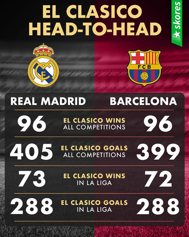 Real Madrid Vs Barcelona Head To Head El Clasico Statistics Opera News - Real Madrid 15 Часов Назад В 17:19.